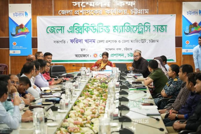 আজ ২৯ মে চট্টগ্রাম জেলা প্রশাসকের সম্মেলন কক্ষে ‘জেলা এক্সিকিউটিভ ম্যাজিস্ট্রেসি সভা’ জেলা প্রশাসক ও জেলা ম্যাজিস্ট্রেট জনাব ফরিদা খানমের সভাপতিত্বে অনুষ্ঠিত হয়।