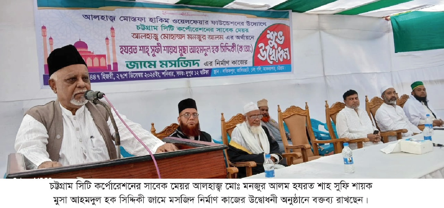 মসজিদ নির্মাণ কাজ উদ্বোধনী অনুষ্ঠানে মোস্তফা হাকিম গ্রুপের পরিচালক মোহাম্মদ নিজামুল আলম রাজু, মাইজভাণ্ডার দরবার শরিফ মসজিদের খতিব মাওলানা সৈয়দ মোহাম্মদ বশিরুল আলম, মাওলানা মুহাম্মদ নুরুল ইসলাম ফোরকানি, মুসাবিয়া আস্তানা চাক্তাই পাক দরবারের মাওলানা আবুল কালাম আজাদ, মুসাবিয়া দরবার শরীফের যুগ্ম মহাসচিব মোহাম্মদ খুরশীদ আলম, তৈয়বীয়া জামে মসজিদের খতিব মাওলানা ইমরান হাসান আল কাদেরী, মোস্তফা হাকিম কলেজের সাবেক উপাধ্যক্ষ মো. বাদশা আলম উপস্থিত ছিলেন।