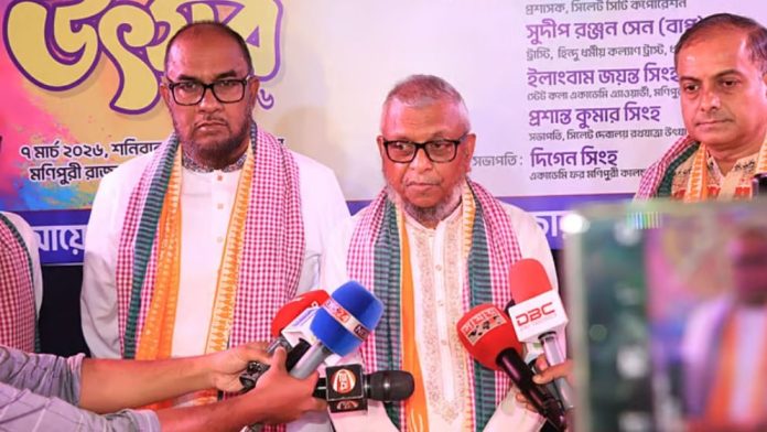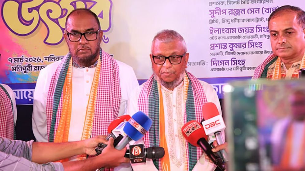 শনিবার (৭ মার্চ) সকালে সিলেট নগরের মির্জাজাঙ্গাল মণিপুরি রাজবাড়ি এলাকায় একাডেমি ফর মণিপুরি কালচার অ্যান্ড আর্টসের উদ্যোগে আয়োজিত হোলি উৎসবে প্রধান অতিথির বক্তব্য শেষে আরিফুল হক চৌধুরী সাংবাদিকদের এ কথা বলেন।