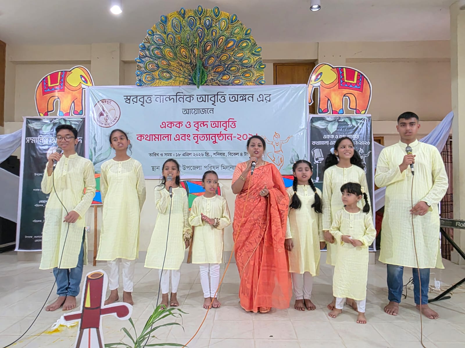 বিশিষ্ট আবৃত্তিশিল্পী ও সংগঠক তামান্না ইসলামের গ্রন্থনা ও নির্দেশনায় বৃন্দ আবৃত্তিতে অংশ গ্রহণ করেন শিশুশিল্পী সৌমি সাহা,সৃজিতা দত্ত, শালোমী বিশ্বাস আস্থা, জাগৃতি সাহা,থোয়াই সুই চিং মারমা,অজিতাভ মহাজন,অভিয়ান মহাজন, ফাওজিয়া আলম,ফাইয়াজ আলম।