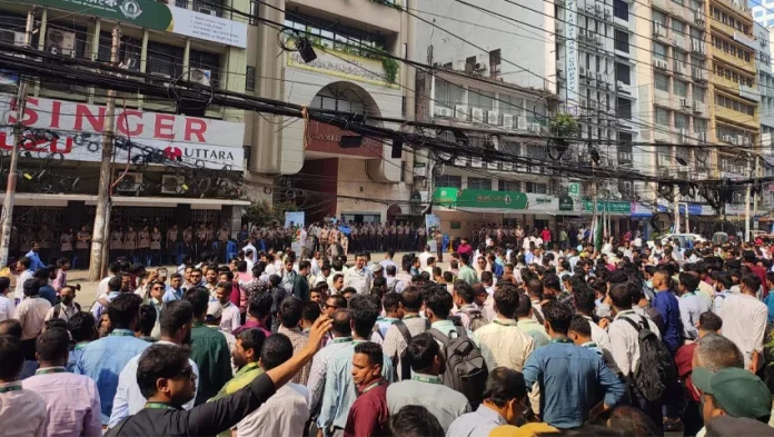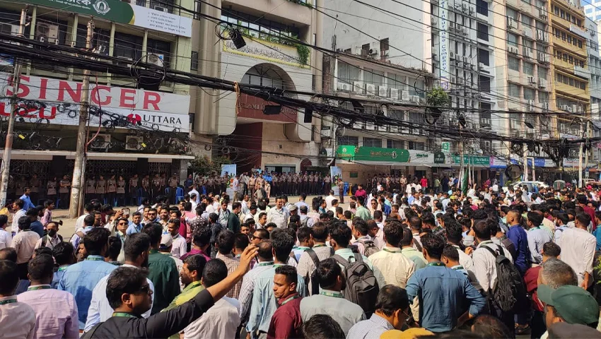 চাকরি পুনর্বহাল চেয়ে মতিঝিলে ৬ ইসলামী ব্যাংকের সাবেক কর্মীদের অবস্থান