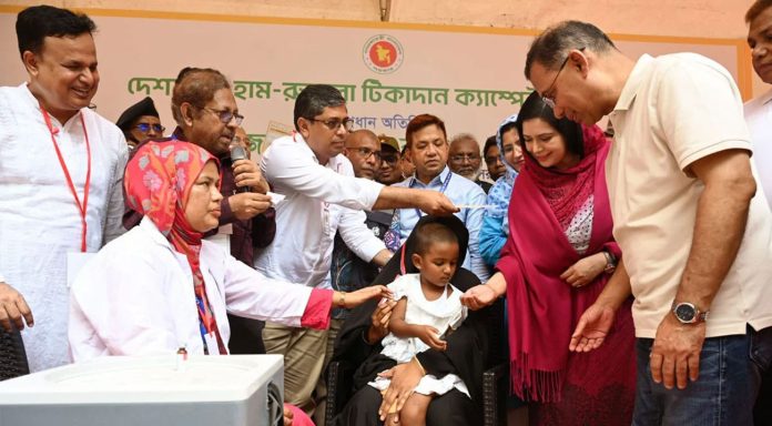 একই অনুষ্ঠানে জাতীয় পর্যায়ের হাম-রুবেলা টিকাদান কর্মসূচির উদ্বোধন করা হয়।
