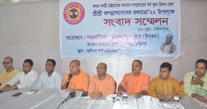 সংবাদ সম্মেলনে লিখিত বক্তব্য পাঠ করেন ইসকন চট্টগ্রাম বিভাগীয় সম্পাদক চিন্ময় কৃষ্ণ দাস ব্রহ্মচারী। এছাড়া সংবাদ সম্মেলন থেকে ৯ দফা দাবি উত্থাপন করা হয়। দাবিগুলো হলো, রথযাত্রায় এক দিনের সরকারি ছুটি ঘোষণা, সাম্প্রদায়িক হামলায় ক্ষতিগ্রস্ত মঠ মন্দির সরকারি অর্থায়নে সেনাবাহিনীর তত্ত্বাবধানে পুনর্নির্মাণ, দেবোত্তর সম্পত্তি রক্ষা ও সংরক্ষণ, প্রতিটি উপজেলায় সরকারি অনুদানে কেন্দ্রীয়ভাবে মন্দির নির্মাণ, ঐতিহ্যবাহী তীর্থস্থানসমূহ রক্ষা ও সংরক্ষণ, সাম্প্রদায়িক হামলা বন্ধে কঠোর আইন ও শাস্তি মৃত্যুদণ্ড, ডিজিটাল সিকিউরিটি আইনে হিন্দুদের হয়রানি বন্ধ ও জেলে থাকা নিরপরাধীদের নিঃশর্ত মুক্তি, হিন্দুদের টার্গেট করে বিভিন্ন শিক্ষা প্রতিষ্ঠানে শিক্ষকদের হয়রানি বন্ধ ও শিক্ষাব্যবস্থা রক্ষায় যথাযথ ব্যবস্থা নেওয়া।