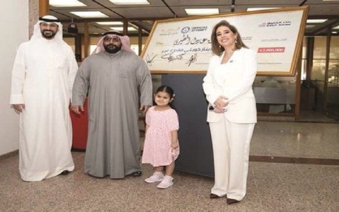মধ্যপ্রাচ্যের তেল সমৃদ্ধ দেশ কুয়েতে ৬ দশমিক ১ মিলিয়ন ডলারের (বাংলাদেশি মুদ্রায় ৭১ কোটি ৩৮ লাখ ৮০ হাজার টাকা) লটারি জিতে তাক লাগিয়ে দিয়েছে চার বছর বয়সী এক কন্যা শিশু। বিশাল অঙ্কের এই লটারি জেতায় এত অল্প বয়সেই বিশ্বের মিলিয়নেয়ারদের তালিকায় নাম উঠে গেছে তার।