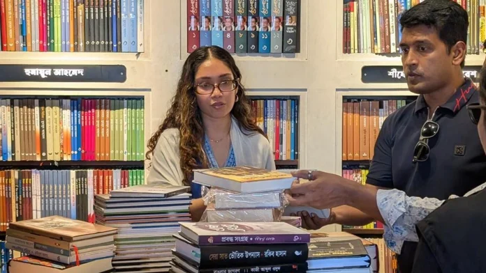 ঢাকার বাংলামোটরে চেইন বুকশপ বাতিঘরে বই কিনতে গিয়েছিলেন প্রধানমন্ত্রী তারেক রহমানের মেয়ে জাইমা রহমান।
