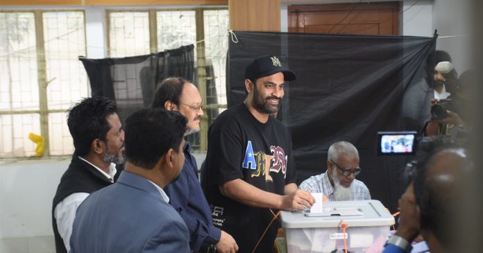 বৃহস্পতিবার (১২ ফেব্রুয়ারি) সকাল ১১টার দিকে ভোট দিতে আসেন তামিম। পরে তিনি তার ভোটপ্রয়োগ করেন। ভোটকেন্দ্রে থেকে তাকে কঠোর নিরাপত্তা দিয়ে গাড়িতে তুলে দেন সেনাবাহিনীর সদস্যরা।